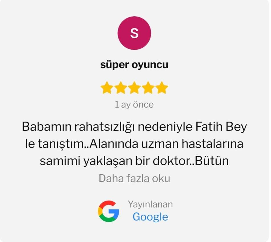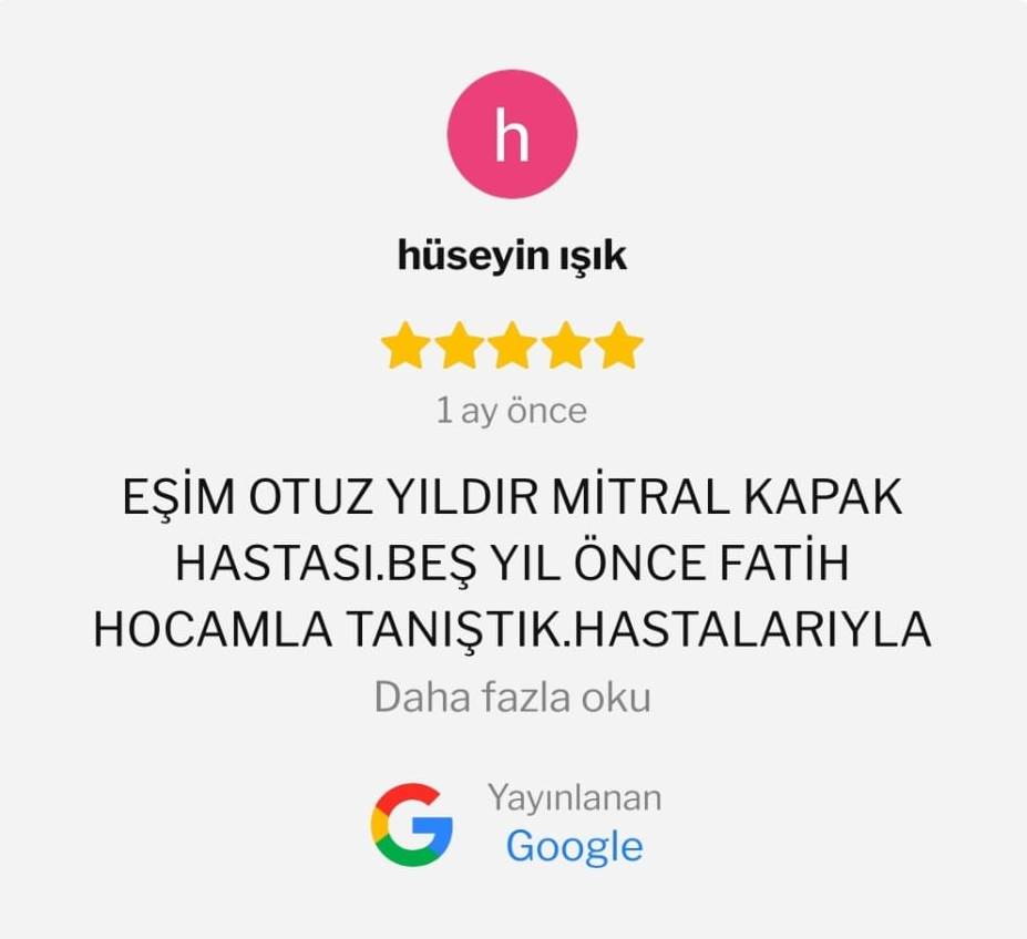 Antalya Kardiyoloji Uzmanı Doç. Dr. Fatih Koç Hasta Yorumlarına Göz Atabilirsiniz.